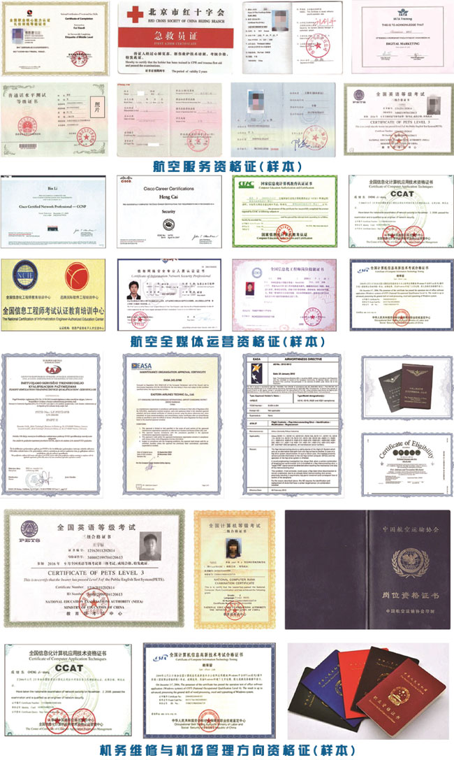 实操课程:化妆、形体、体能训练、空乘播音技巧、机场定岗实习、客舱服务实训、紧急安全救护实训、地面服务模拟实训等。