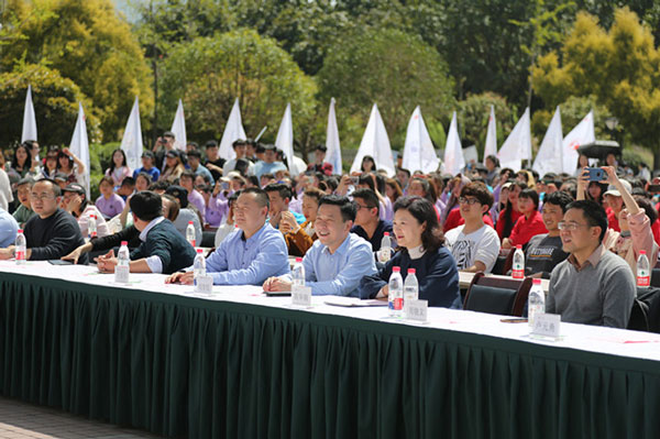 高华锦代表学校对本届大学生社团文化节开幕表示热烈祝贺,对积极参加社团节各项活动的广大师生及各部门工作人员表示诚挚的感谢。她谈到,学生社团是学生培养兴趣、发展个性的重要载体,是学校“全人教育”理念的重要内容,也是大学生文化传承与创新的实践平台。一年一度的社团文化节既是对我校社团建设成果的一次集中检验和展示,也是广大文理学子才艺展示的舞台。她希望社团建设继续坚持实施“五化”工作目标,进一步提升社团组织的育人功能,进一步加强对学生社团的分类指导。最后,她宣布第十五届大学生社团文化节开幕。
