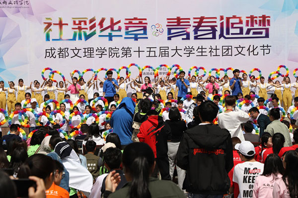 开幕式上,文理校友带来的《萌宠大作战》为活动增添乐趣,TATA民谣社、樱花日语社、零度音乐社带来的《飞young青春》将现场的氛围引向高潮,中国特色社会主义理论体系学习协会及各社团代表表演的《我们都是追梦人》表达出文理筑梦人的奋斗青春,展现出文理学子青春向上的精神风貌。